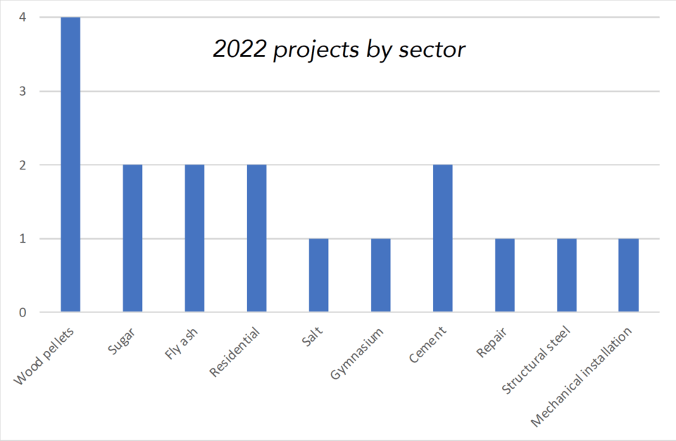 This year the company is keeping busy with cement and cement-related projects domestically and abroad, as well as sugar storage and repair work, to name a few.