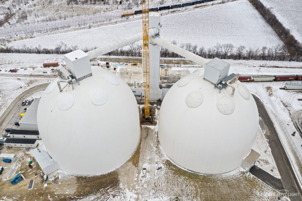 On the fabrication side, Dome Technology built and installed a large tube gallery that connects an existing bucket elevator to the new DomeSilo, allowing the company to optimize conveyance and protect product integrity. Built in Dome Technology’s shop, the tube gallery is 13.5 feet in diameter for ease of maintenance access and extends 160 feet to connect the bucket elevator to the new DomeSilo.