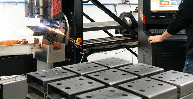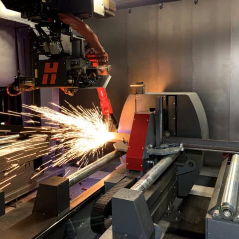The AKS plasma table also processes two-inch to 24-inch outside-diameter round pipe and up to 12-inch-by-12-inch standard rectangular or square tube up to 20 feet long with a maximum weight of 3,300 pounds (1,500 kg).