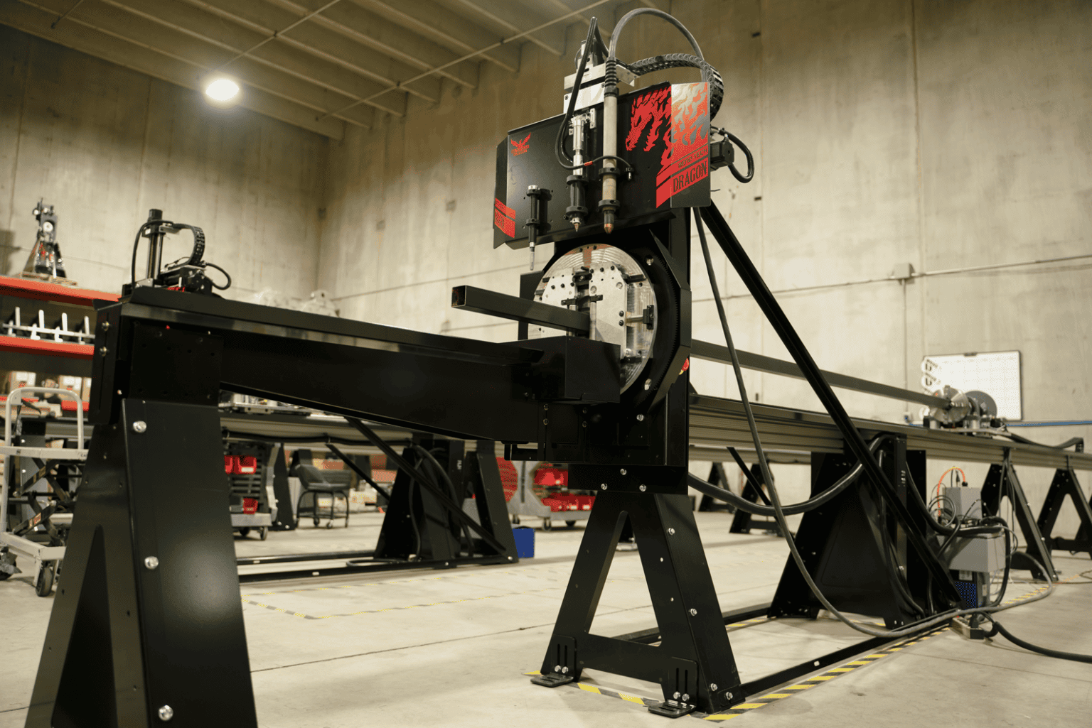 The BendTech Dragon A400 is a CNC tube and pipe plasma cutter designed to process materials up to 24 feet in length and with a maximum weight of 400 pounds. It can handle round tubing from 0.75 to six inches in diameter and square or rectangular tubing from one to four inches. The machine utilizes a five-axis system for precise control and automation.