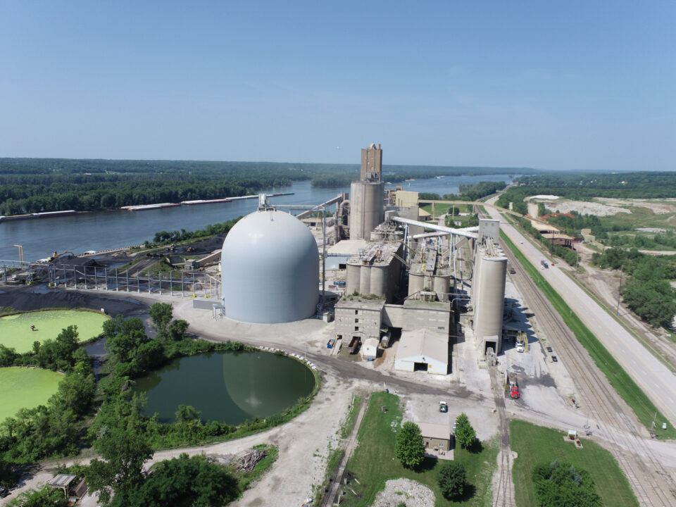 The Davenport facility produces cement from minerals mined at a nearby quarry. Product is stored on site temporarily, then shipped by barge to customers.