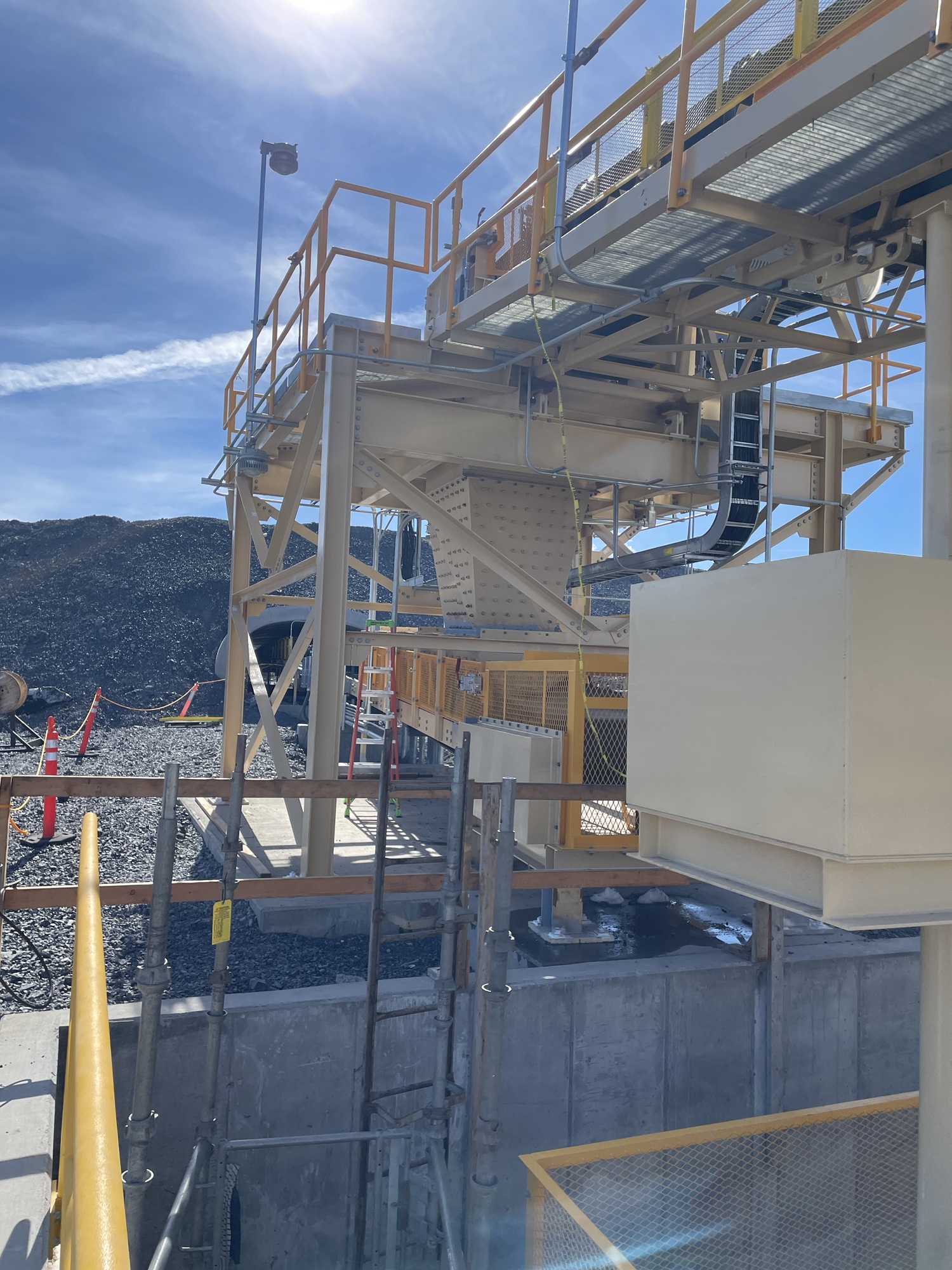 In addition, the Dome Technology team designed and installed all concrete, conveyor pits, and footings, as well as assembly and erection of the boom tower and fabricated steel components like ladders, staircases, decking, and handrails.