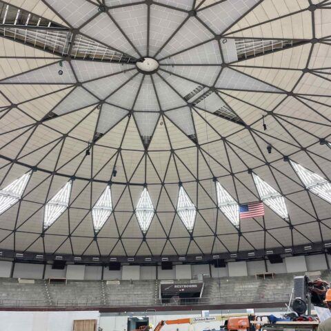 Dome Technology was hired to rehabilitate the key element of the facility: the 50-plus-year-old Buck Van Huss domed roof. According to vice president of construction Bryan Butikofer, other contractors claimed it couldn’t be salvaged, but the Dome Technology team was determined to make it happen. The two greatest achievements on this project were both engineering feats: “coming up with the solution that no one else could” and “detailing the steel to perfectly match the existing geometry,” he said.