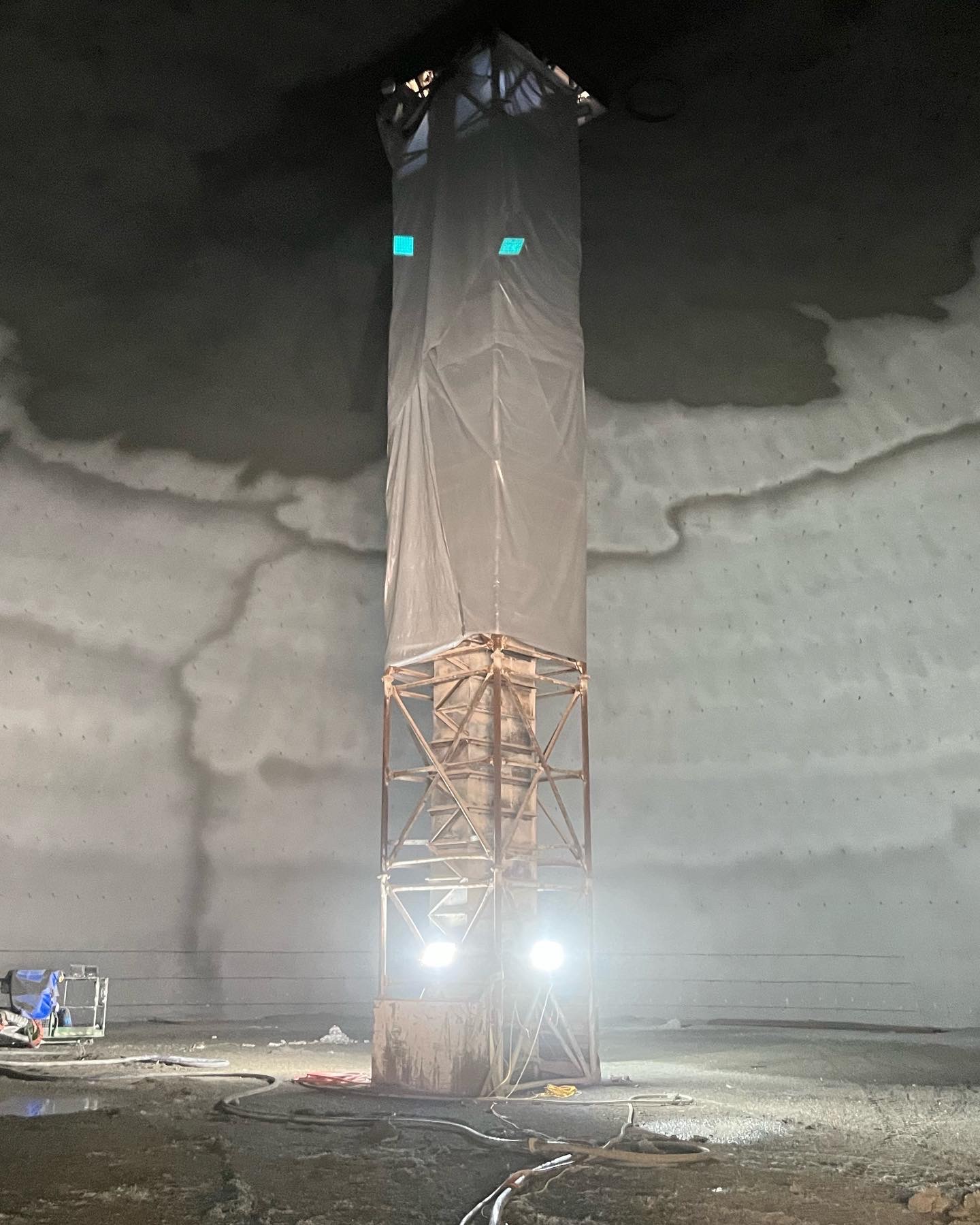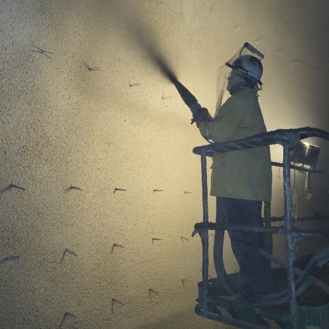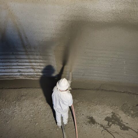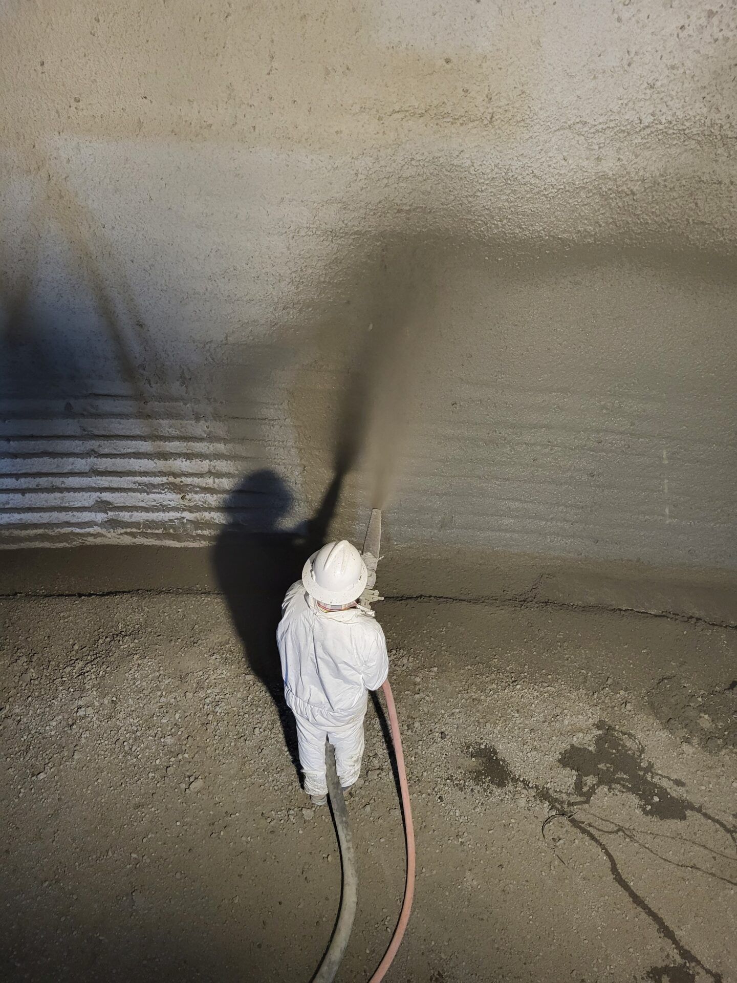 Dome Technology typically uses a dome-shaped airform to achieve the shape of the finished structure. High-powered fans inflate the airform, and concrete is applied to the interior surface using the shotcrete method. The finished reinforced-concrete dome is so solid it can withstand hurricane winds and all sorts of product loading and unloading. This time, however, there would be no airform as the team used the existing dome shell as the concrete form.