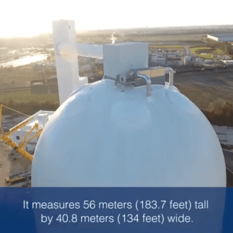 The dome is equipped with mechanical systems providing a fill rate of 200 metric tons per hour and a reclaim rate of 150 metric tons per hour.