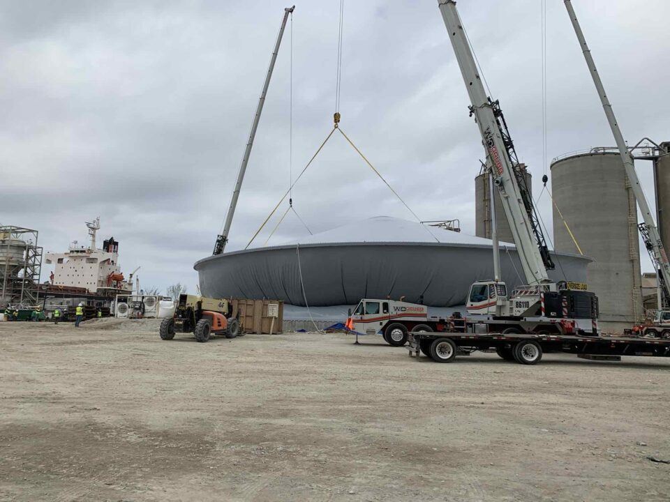 In Chesapeake, Virginia, Dome Technology is hard at work on a 67,500-metric-ton DomeSilo for Titan America. The dome is 138 feet in diameter and 141 feet tall and is engineered to withstand settling and natural disaster alike.